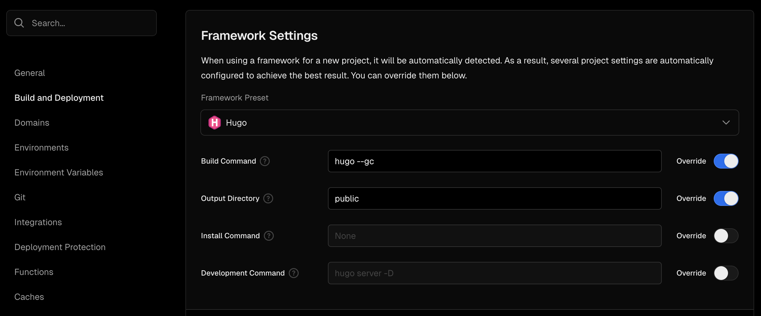 Finally, update `baseURL` in `hugo.toml` to the URL Vercel generated for your deployment: