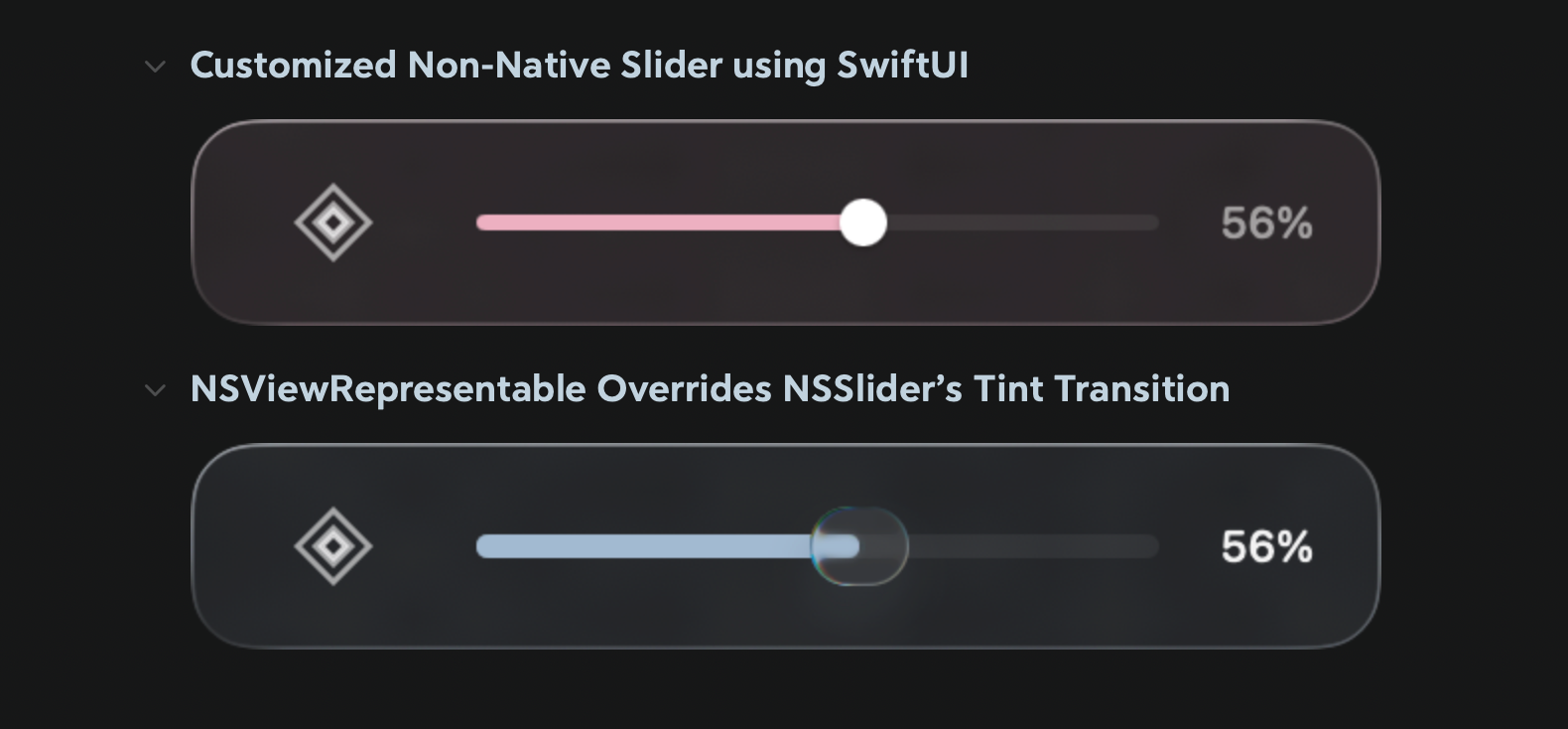 While this solves the animation problem, you lose all the native visual polish of a macOS slider, including the “Liquid Glass” frosted effect, thumb shadows, press feedback, and system-level accessibility support. For an app aiming for a native feel, that’s too high a price to pay.
