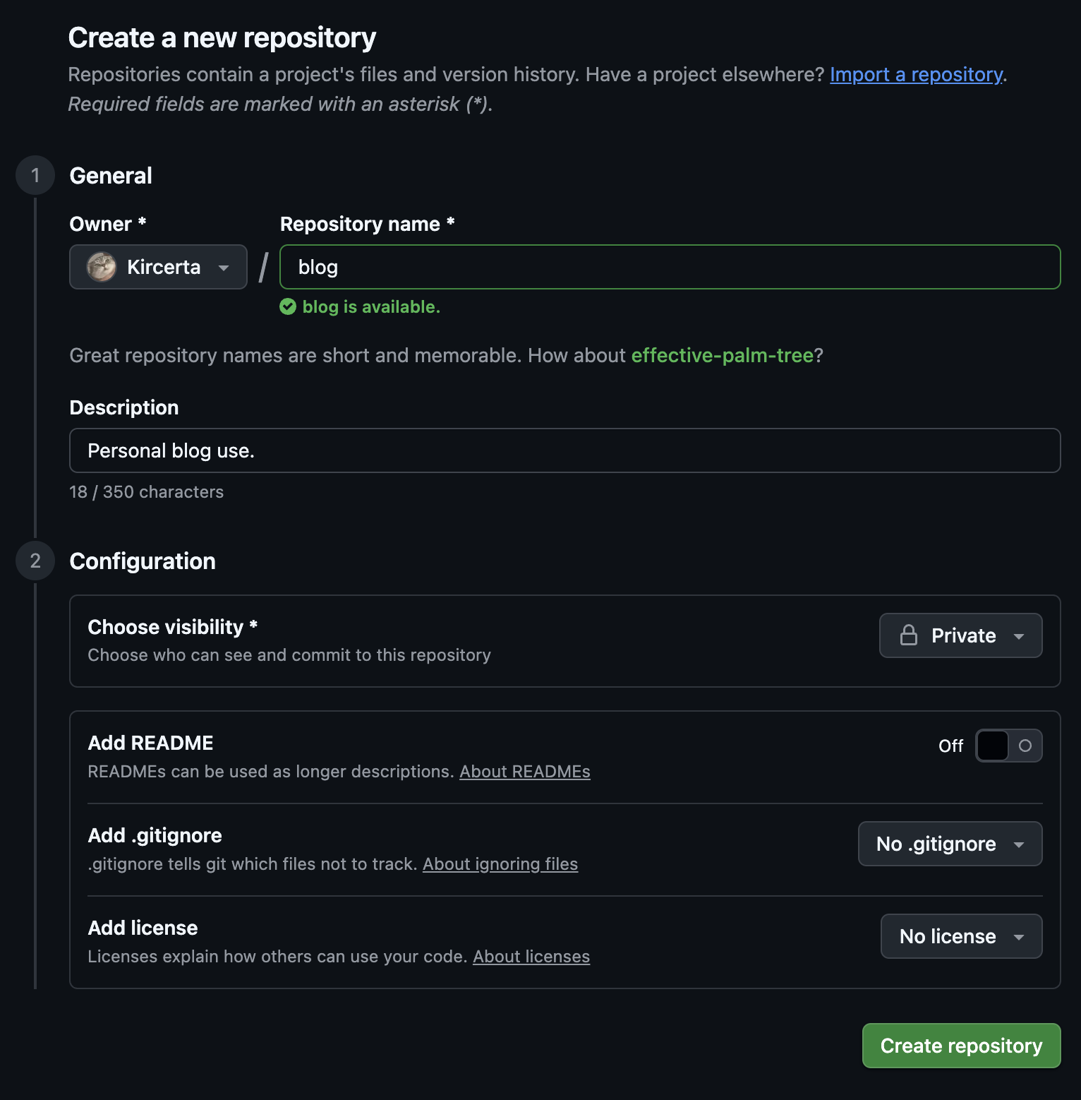 接下来,在Github进行repository的创建: