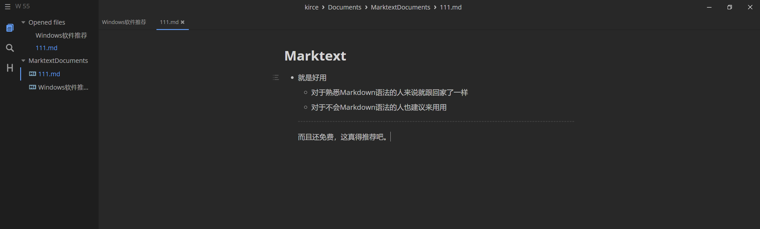还有一个想介绍的是Windows上的Markdown编辑器,名字叫Marktext。